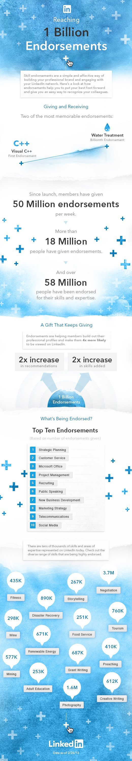 أعلنت شبكة التواصل الاجتماعي linkedin اليوم وعبر أنفوجرافيك بتخطي ما يعرف بالشهادات أو Endorsements حاجز المليار شهادة .
