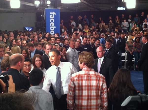 وتعتبر زيارة أوباماً هذه هي المرة الأولي التي يذهب فيها أوباما لمقر الفيسبوك، ولكنها ليست المرة الأولي التي يلتقي فيها زوكربيرج مع أوباما .