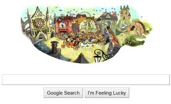 من جانبه احتفل محرك البحث الأشهر عالمياً “جوجل” بالزفاف الملكي الشكير في بريطانيا على طريقته وذلك بتغيير شعار محرك بحث جوجل البريطاني google.co.uk على شكل قصر حفل زفاف ملكي وعربات وأحصنة وأشياء تتعلق بالحفل .