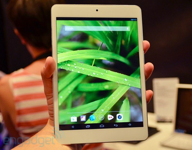 - الشاشة: 7.85 أنش بدرجة وضوح 768 في 1024 بتقنية IPS وهي نفس الموجودة في الآيباد ميني وهي من أنتاج شركة LG