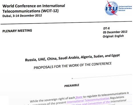 سرب موقع WCIT Leaks أنّ هناك نية لكي يصبح للحكومات سيطرة على شبكة الإنترنت بشكلٍ كامل. وهذا ما أظهرته وثيقة مؤتمر للأمم المتحدة وبالتحديد الإتحاد الدولي للإتصالات ITU الذي يأخذ من دبي مقرًا له .