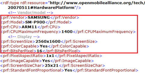 ظهر في اليفرة المصدرية لبرمجية موقع UAProf التابع لشركة سامسونج مواصفات جهاز لوحي جديد بدقة شاشة عالية الوضوح ويحل رقم الموديل SM-P900 وأسمه Galaxy Tab 3 Plus .