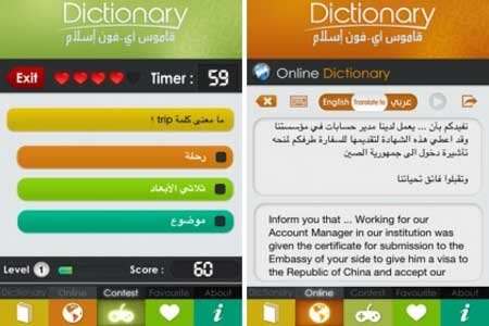 أطلقت شركة آي فون إسلام تطبيق القاموس العربي والإنكليزي لهاتف أي فون وقد أسمته Arabic Dictionary.