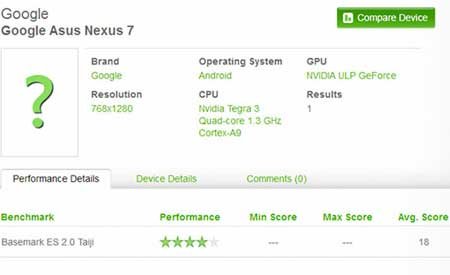 ظهرت علينا اليوم صورة يقال أنها وبحسب المصدر صورة نتائج الأختبارات للجهاز اللوحي الخاص بجوجل والذي سيكون من تصنيع شركة Asus .