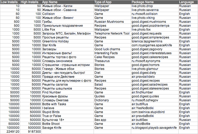 وقالت الشركة أنها لبعض هذه التطبيقات تأثيرات خطيرة كون عدد مرات التحميل لبعضها تتراوح بين مليوني وتسعة ملايين تنزيل، وهذا يعطينا فكرة عن الأجهزة المصابة بهذه البرمجية الخبيثة.