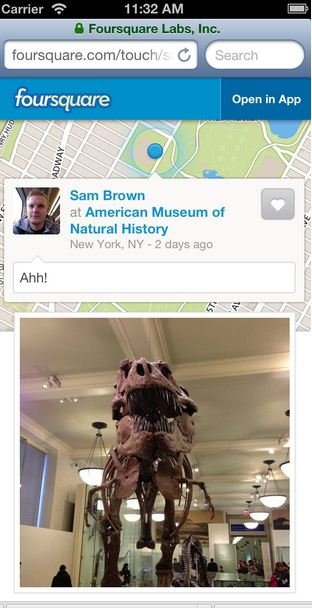 أعلنت شبكة فورسكوير عن إتاحة إمكانية عرض كافة التفاصيل عنك لأصدقائك عندما ينقرون على أية تسجيل دخول تشاركها على فيس بوك أو تويتر بواسطة هواتفهم ، وستظهر صفحة جديدة في التطبيق تحوي كافة التفاصيل عنك مثل عمليات تسجيل الدخول و العناوين والصور و الشارع و النقاط والتعليقات وحتى الإعجابات ، ويمكن لأصدقائك التعليق أو الإعجاب بسهولة على أية عملية تسجيل دخول تجريها مباشرة من العرض على الويب، أو يمكنهم فتح تطبيق فورسكوير لمعرفة المزيد عن المكان الذي كنت فيه.