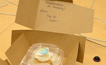مرة أخرى يتذكر طاقم عمل متصفح اكسبلورر من مايكروسوفت موعد اصدار المتصفح المنافس لهم وهو الاصدار الشادس “فايرفوكس 6” ليرسلوا الى طاقم عمله كعكة مرسوم عليها شعار اكسبلورر وذلك بمناسبة اطلاق فايرفوكس 6 .