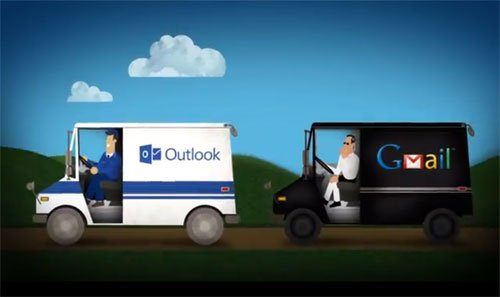 ويبدأ الإعلان بظهور شاحنة بريد Outlook وثانية لخدمة بريد Gmail، وينتقل المشهد إلى رجل البريد الخاص بخدمة Gmail وهو يفتح الرسائل قبل وضعها في الصندوق الخاص بالمستخدم وقراءتها ومن ثم وضع إعلانات مناسبة لمحتواها داخل ظرف الرسالة، فيما يقوم رجل البريد الخاصة بخدمة Outlookبتسليم الرسالة دون الاطلاع على محتواها.