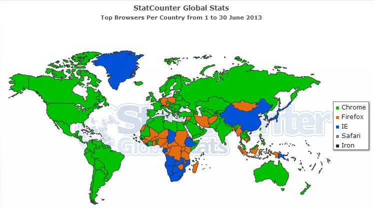 وبحسب دراسة حديثة قامت بها StatCounter فقد حصد متصفح كروم نسبة 42.68% في نسب الشعبية ألأكثر تلاه متصفح إكسبلورر بنسبة 25.44% ومتصفح فايرفوكس موزيلا ثالثا بنسبة 20.01% وذلك بين الفترة 1 إلى 30 يونيو الفائت.
