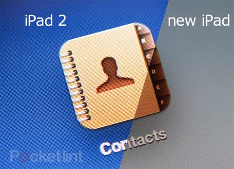 فالايباد الجديد يحمل شاشة خارقة الوضوح وهي من شاشة ريتينا retina بدرجة وضوح 2048×1536، بينما الآيباد 2 كان يحمل شاشة بدرجة وضوح 1024×768 من نوع IPS .