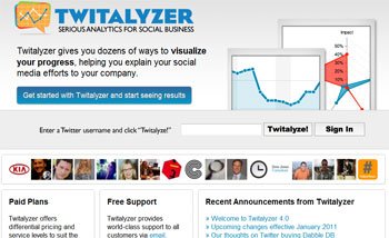 ومع هذا الانتشار الكبير والواسع أصبح لا بد وأن تظهر أدوات خاصة لتحليل محتوى الموقع، ولذلك جاء موقع Twitalyzer.com ليقوم بالمهمة .
