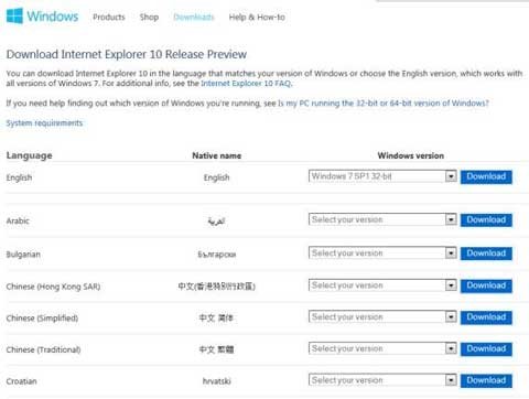 وتتيح الشركة تحميل إكسبلورر 10 لنظام ويندوز 7 بلغات مختلفة منها اللغة العربية وستتوفر بنسختي 32 و 64 بيتا .