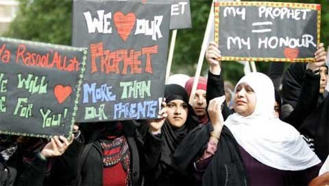 لم ينسى مسلمي بريطانيا مهتمتهم للدفاع عن الرسول محمد صلى الله عليه وسلم ، حيث بعد أسابيع من مسألة الفيلم المسيء للرسول وعدم موافقةجوجل على حذف الفيلم من موقع يوتيوب المملوك لها، فقد قام مسلموا بريطانيا بمظاهرة أمام مكتب جوجل في العاصمة البريطانية لندن .