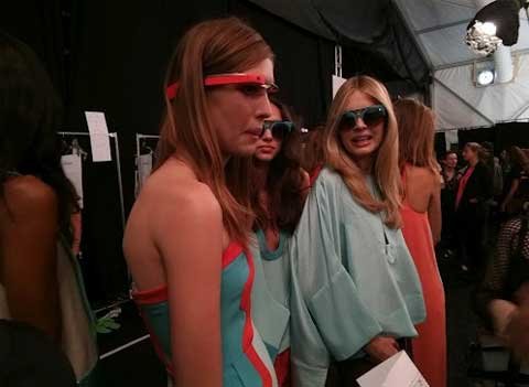 وقامت مجموعة من عارضات الأزياء بارتداء نظارة جوجل على خشبة المسرح الخاص بمعرض (DVF) لربيع/صيف 2013.