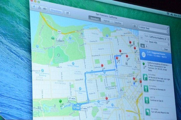 الميزة الجديدة تسمح بإرسال الإتجاهات والأماكن من هاتفك الآيفون إلى حاسبك الـ Mac المحمل بالخرائط والمزود بنظام Mac OS X Mavericks الجديد .