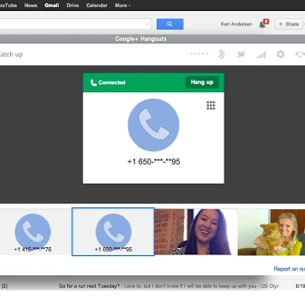 لإجراء مكالمة من Hangouts، لن يلزمك سوى البحث عن رمز الهاتف الجديد في Gmail أو البحث عن عنصر القائمة “الاتصال بهاتف” في +Google وفي إضافة Chrome. وبطبيعة الحال إذا لم يكن قد سبق لك تجربة Hangouts في Gmail، فلا يزال بإمكانك دائمًا النقر على صورة ملفك الشخصي في قائمة الدردشة وتحديد “تجربة Hangouts الجديدة”.