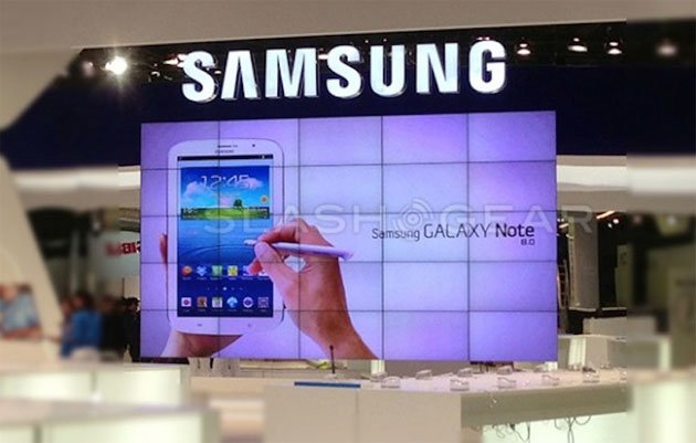 ألتقط مصور تابع لموقع SlashGear صورة بروشور ضخم للجهاز اللوحي المرتقب Galaxy Note 8.0 في جناح العملاق الكوري “سامسونج” في مؤتمر MWC 2013 والذي يبدأ الأثنين 23/2/2013 .