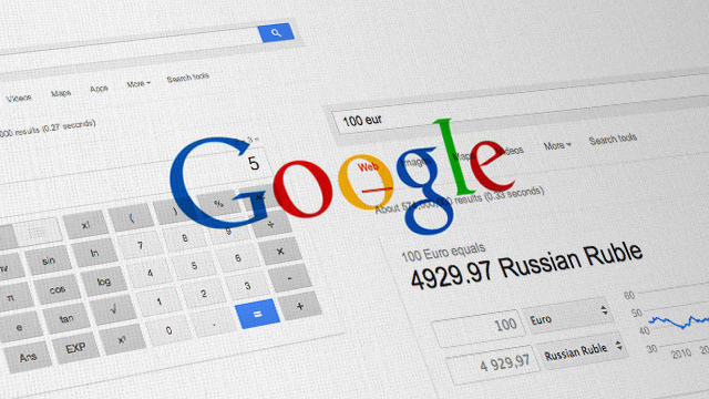 كما أن محرك البحث جوجل يمتلك أدات التحويل بين العملات ومعايير القياس التحويل بين العملات ومعايير القياس المختلفة يتم بسهولة كبيرة من شريط البحث لجوجل بشكل مباشر، دون الحاجة للبحث عن مواقع تقدم هذه الخدمة. ويتم ذلك من خلال كتابة الكمية المراد تحويلها أولاً، ثم الوحدة أو العملة المراد التحويل منها، ثم حرف الجر (in) بالإنجليزية، وأخيراً الوحدة أو العملة المراد التحويل إليها. (15 inches in cm) أو أن تكتب مثلاً 10 USD VS euro ليجلب لك سعر العشرة دولارات كم تساوي في اليورو.