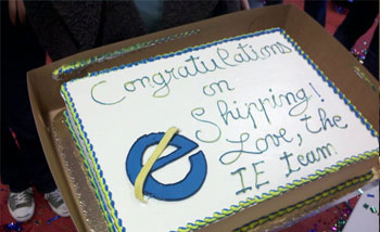 فقد أرسل فريق تطوير إكسبلورر كعكة لتهنئة لشركة موزيلا على اطلاق متصفحها العملاق “فايرفوكس 4“، و قد شارك مدير المنتجات بموزيلا جاي بايل صورة الكعكة على حسابه بتويتر.